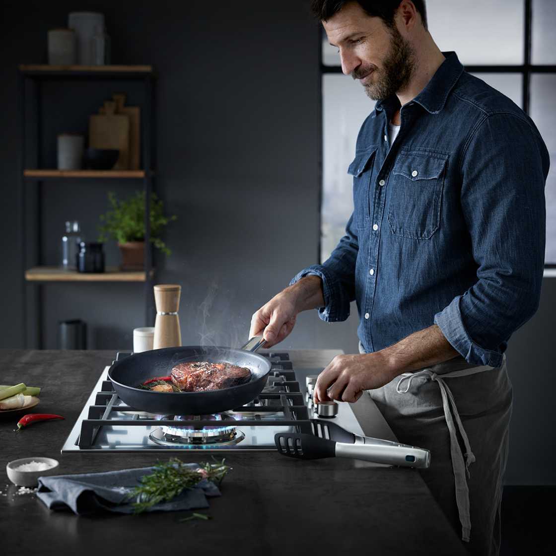 WMF's range is very versatile; pans and frying pans, kitchen knives, cutlery, kitchen utensils and various carafes as well as small electrical appliances such as kettles, grills, blenders, etc.