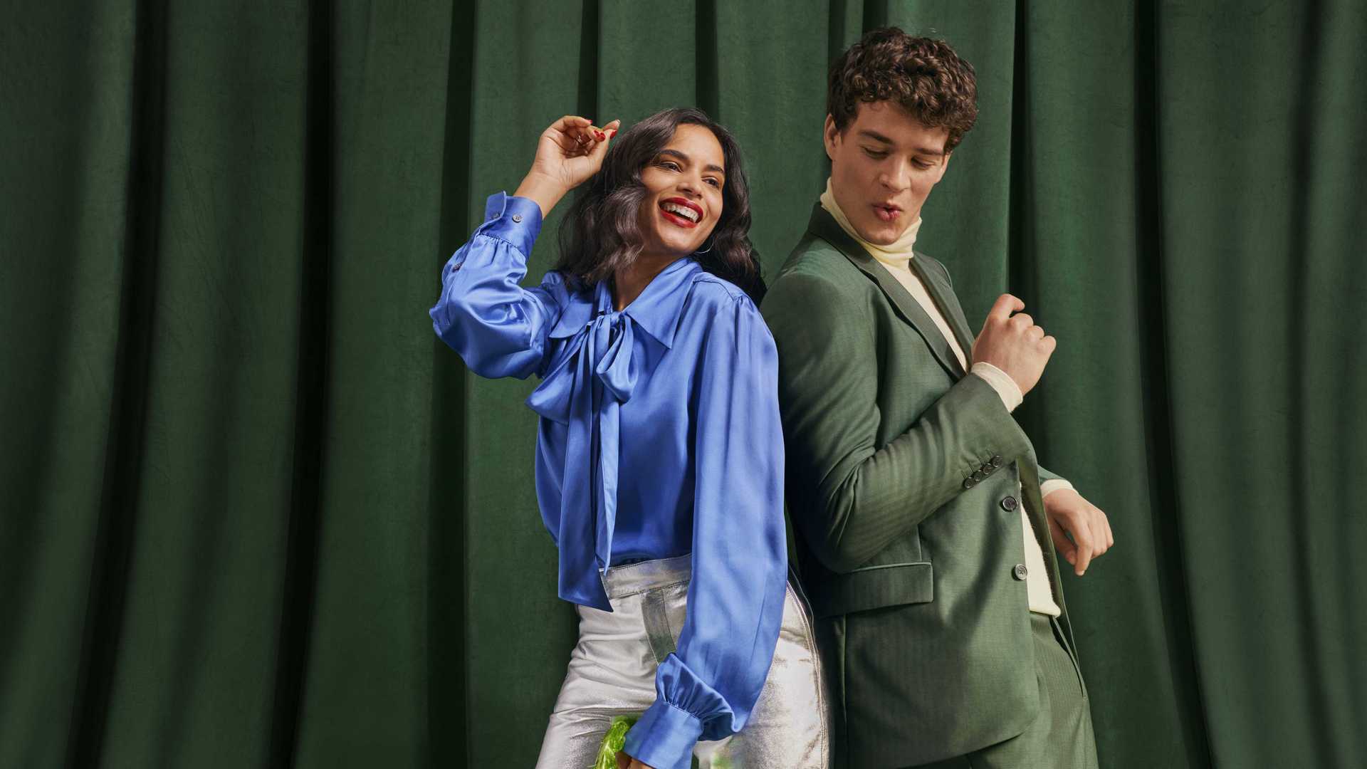 Fall for an elegant, on-trend evening wardrobe: a structured suit from Fursac, a satin shirt from The Kooples, or a graphic coat from Izac.