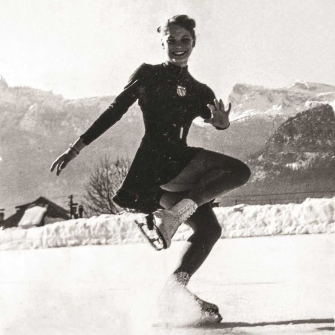 Canadian skater Barbara Wagner performs on the ice rink at the Hotel Cristallo. Photo UFA Zardini