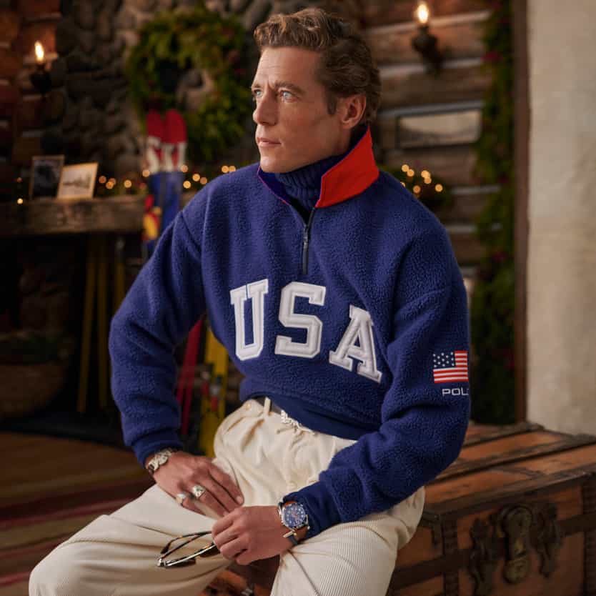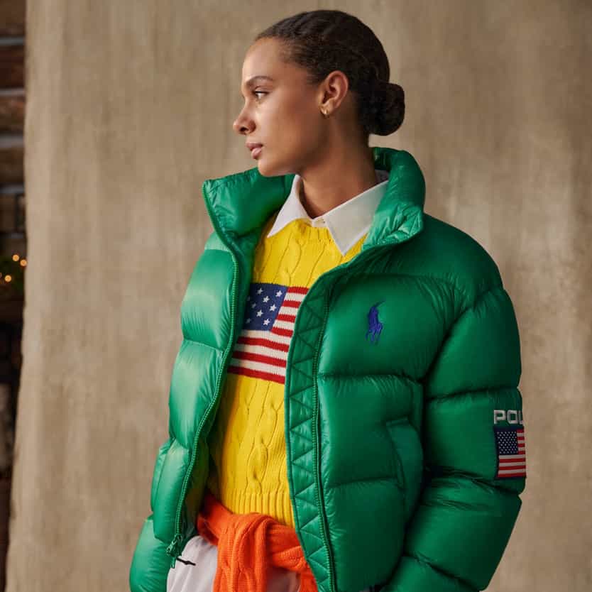 Introducing the Polo Ralph Lauren Team USA collection. The vibrant and dynamic energy of Milano Cortina 2026 inspires sporty graphics and bold color-blocking in signature styles.