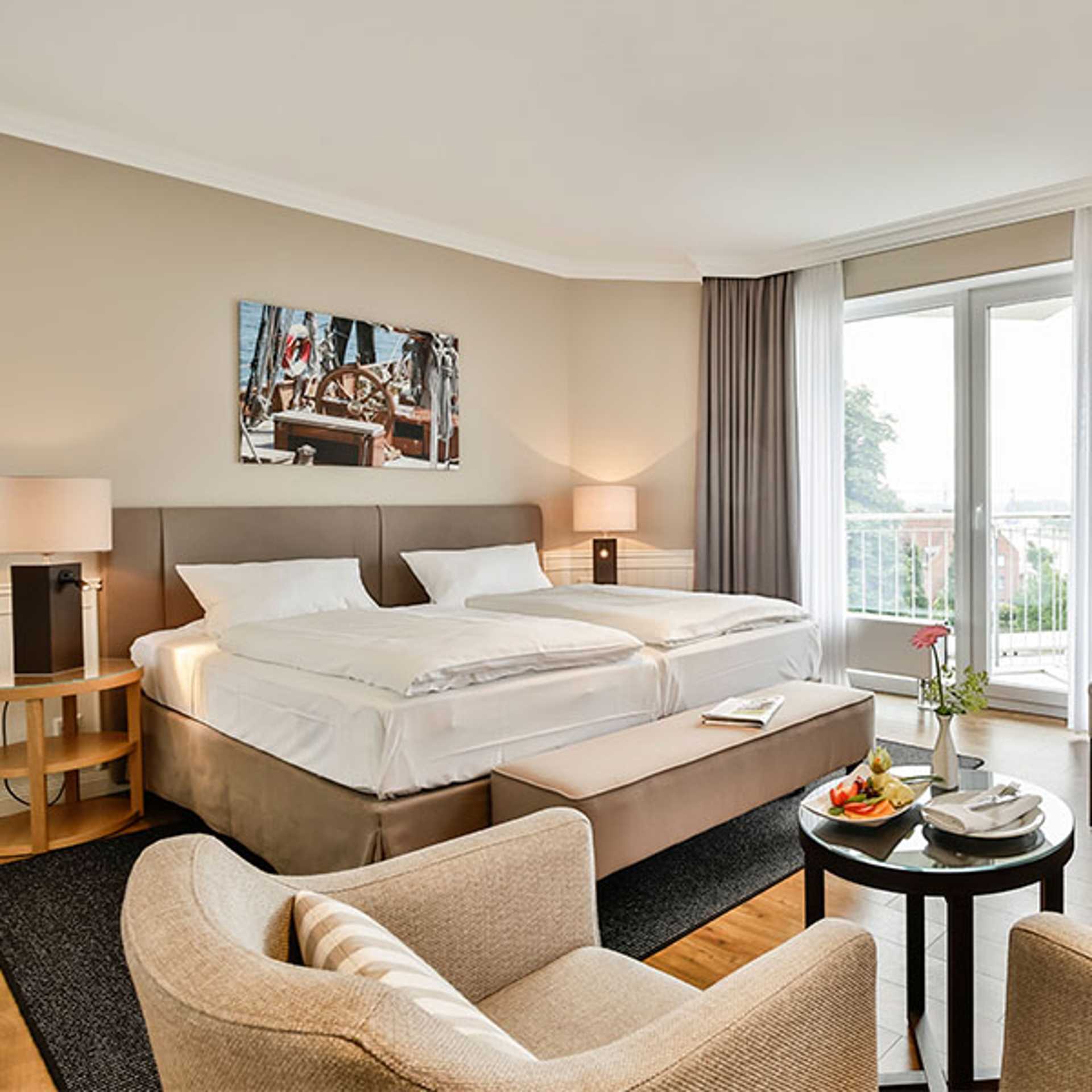 The Hotel ConventGarten is located in the charming canal town of Rendsburg, directly on the Kiel Canal that connects the North and Baltic Sea. After a shopping trip or a stroll along the canal, you can rest your feet in the Achterdeck restaurant and watch the passing boats over a drink. Eckernförde and Kiel are not far away and the Designer Outlet Neumünster is also within easy reach for a day trip.